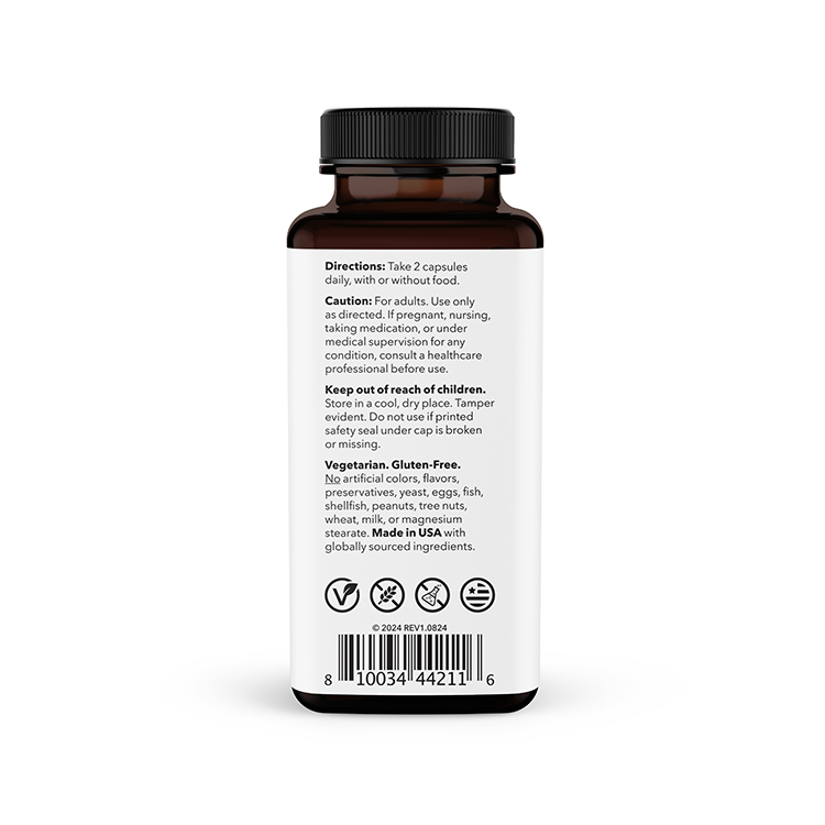 Take 2 capsules daily, with or without food.
