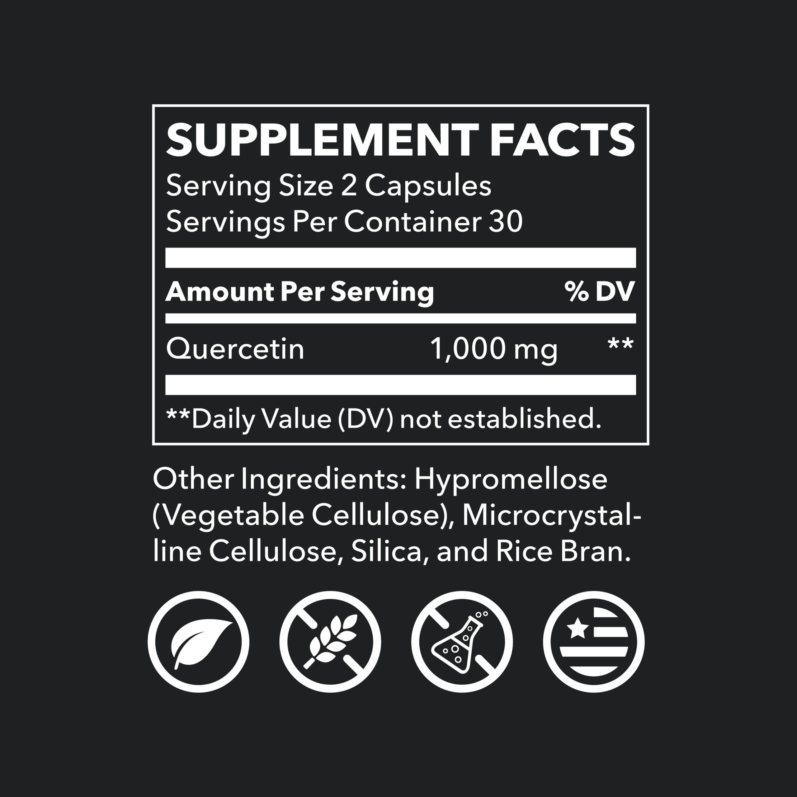 Studies show that quercetin supports a healthy response to redness, swelling, or tenderness in the body as a result from contact with an allergen or exercise-induced inflammation. Quercetin offers superb respiratory support, so you can breathe easier, and increases hydration.