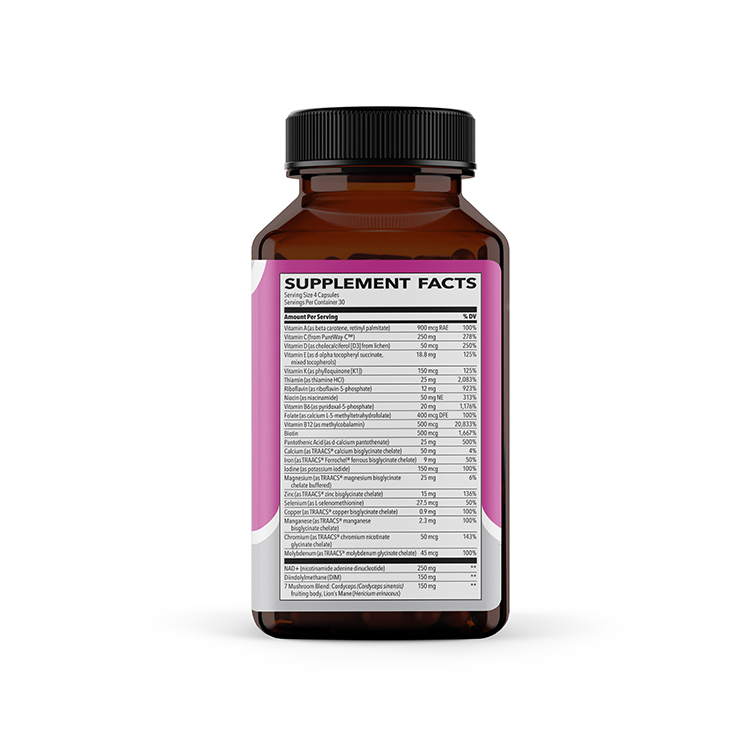 • Includes PureWay-C for superior vitamin C retention, TRAACS chelated minerals for absorption, and Diindolylmethane (DIM) for hormonal support.