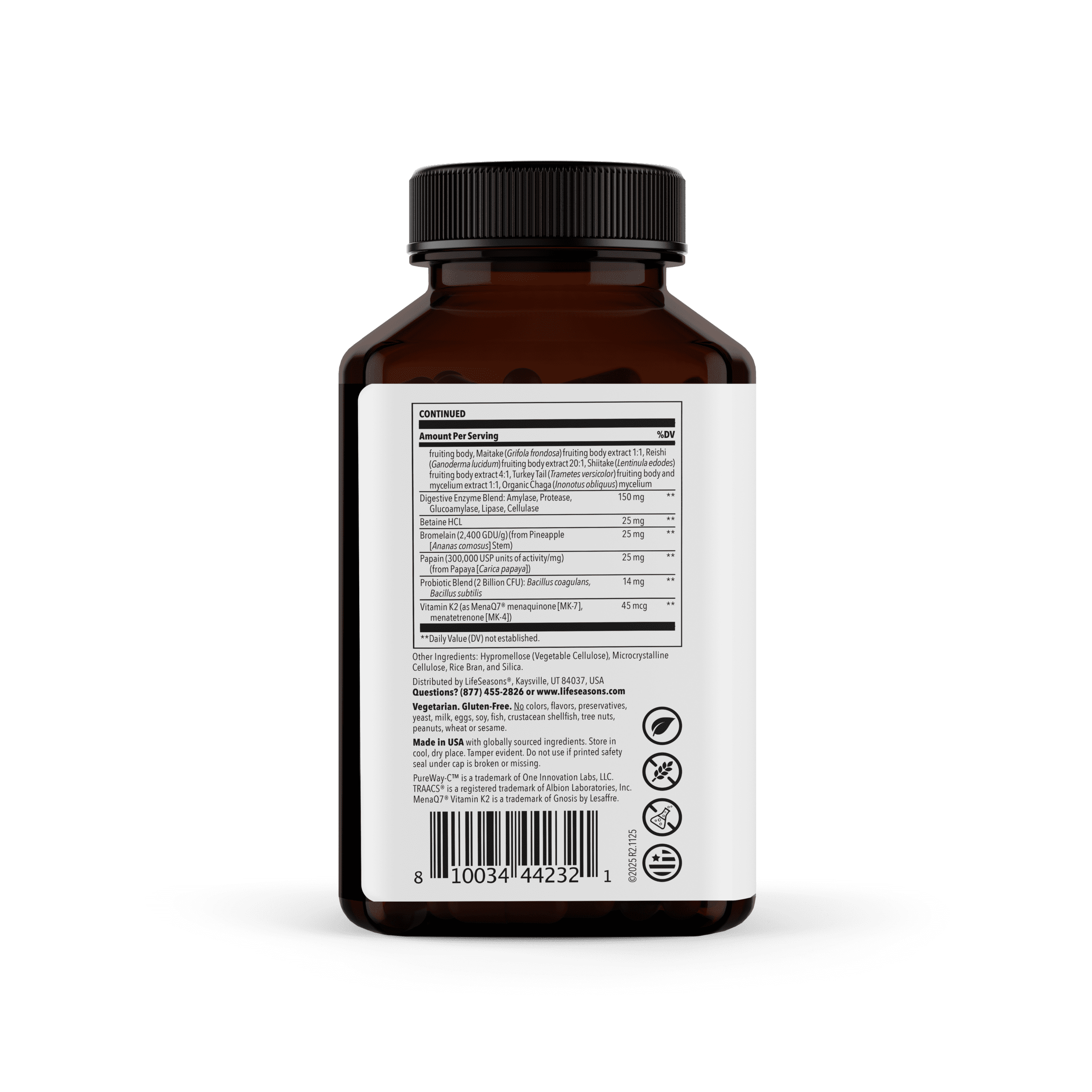 • Supports digestion and absorption with probiotics and enzymes, plus includes a 7-mushroom blend and vitamin K2 for immune, bone, and blood support.*estrogen metabolism and clear complexion*